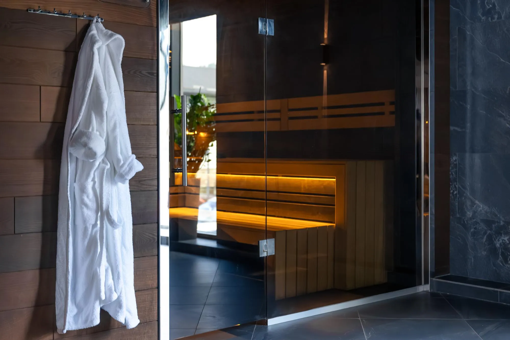 The recovery zone includes a spa, a cold plunge pool, and saunas. This professional space is designed for contrast therapies, which perfectly restore muscles after an active day.